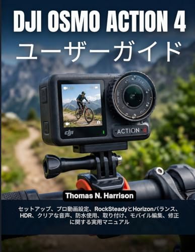 DJI osmo Action 4 ユーザーガイド: セットアップ、プロ動画設定、RockSteadyとHorizonバランス、HDR、クリアな音声、防水 使用、取り付け、モバイル編集、修正に関する実用マニュアル