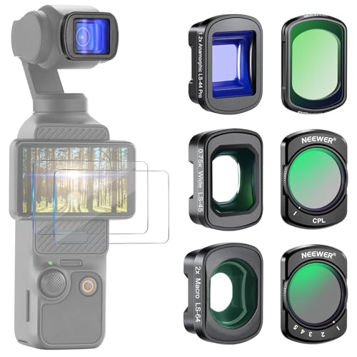 NEEWER Filtertillbehör kompatibla med DJI Osmo Pocket 3 & Creator Combo, magnetisk CPL, 0,75 x vidvinkellins 108° FOV, 2 skärmskydd fotograferingsfilterkit, FL-B29