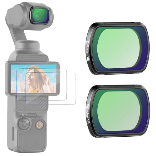 NEEWER Magnetisk svart diffusion 1/2-filter kompatibelt med DJI Osmo Pocket 3 Förbättra filmfilmer, Dreamy Cinematic Effect linsfilter actionkameratillbehör, med 2 skärmskydd, FL-80