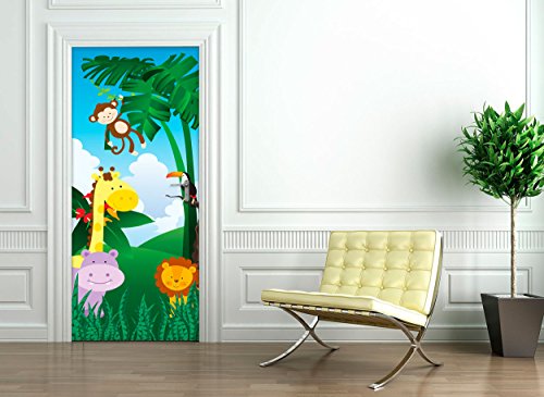 Klistermärken med dörr 204 x 83 cm - djungeldjur