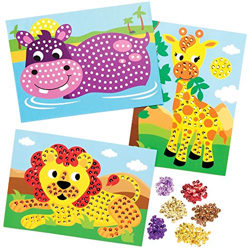 Baker Ross Paljettpysselset "djungeldjur", för konst- och pysselprojekt för barn (4 stycken), brun, gul