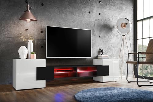 Komodee, Merano TV-bänk skåp, vit/svart, bredd 230 cm x höjd 52,5 cm x djup 35 cm, RGB LED, för vardagsrum, sovrum