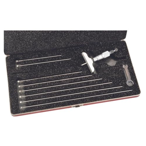 Starrett 440Z-9RL djupmätare för lackspärrstopp, låsmutter, mikrometertyp, 0 till 22,9 cm, 0 cm skaft, 6,3 cm bas, 9 stavar, 0 cm noggrannhet