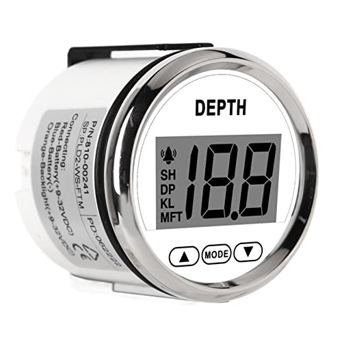 Djupmätare Båt, Båtdjupsmätare, 52 mm / 2 tum Marin djupmätare Digital djupmätare Rank 100M/110Yd Vit bakgrundsbelysning Vattentät för Yachts Fiskebåtar