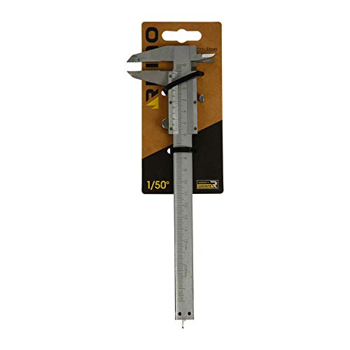 RHINO - Vernier glidfötter - analog skjutfot - tillverkad av rostfritt stål - 1/50° precision - hög kvalitet - djupmätare, inre och yttre mätpip - 5 års garanti