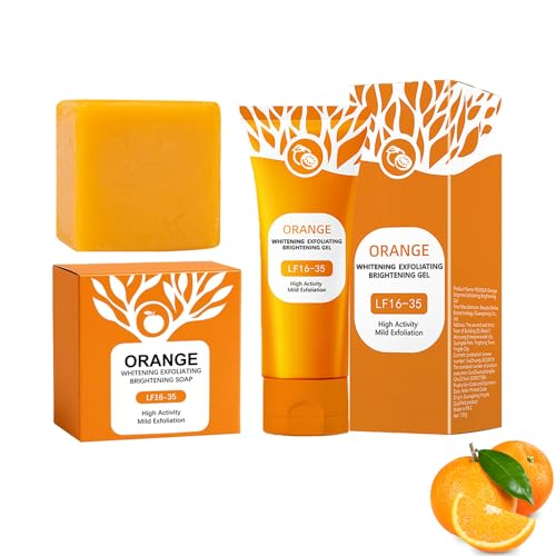 Naturlig apelsinskrubb gel & tvål, orange exfolierande blekningsoap, ansikte och kropp exfoliating scrubGel, djuprengöring och fuktgivande
