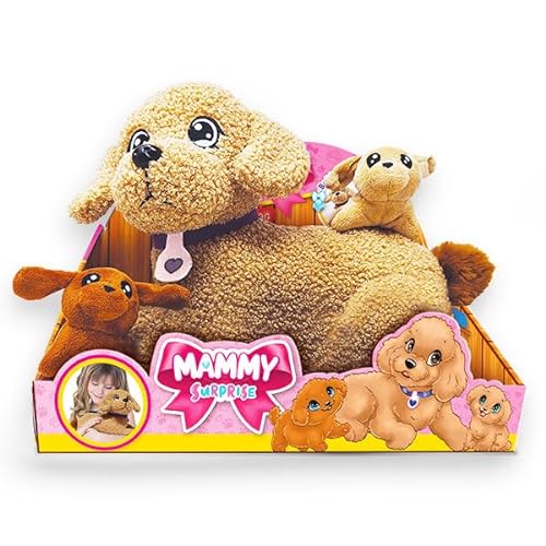 Sbabam, Mammy Surprise Big Version, hundplysch 34 x 25 cm med valpar, barnspel från tidningskiosk, djur leksak för barn, mjuka plyschhundar, dockor med babygåva, babypudel