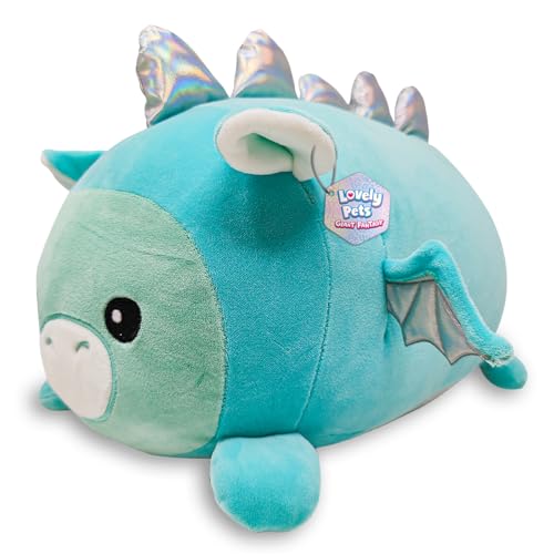 Sbabam, Lovely Pets Giant Fantasy Maxi, Plysch Dragé 36 x 24 x 18 cm, Squishy Djur Leksak för barn, barnspel och tidningsdockor, mjuk drakplysch med metalliska detaljer