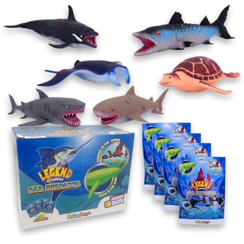 Sbabam FUNNY BOX Legend of Animals Sea Predators, djur leksak för barn, leksaker för barn, mjuka utdragbara dockor, födelsedagsprylar för barn, 4 delar med tigerhaj, spöke och andra