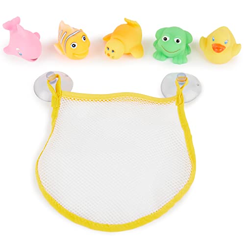 Bieco badleksak för bebisar | 5 st vattenleksaker, badkar med nät | Badkarsleksak från 1 år | färgglada djur leksak badkar för spädbarn | Badkarsleksak barn | Baby badleksaker