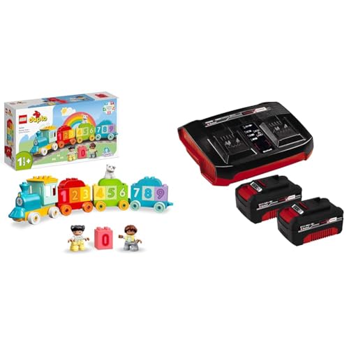 LEGO DUPLO My First Siffertåg – Lär dig räkna leksak för lärande för småbarn 1,5 år 10954 & LEGO DUPLO Afrikas vilda djur Leksak för Barn, Leksaksdjur inkl. Baby Elefant och Giraff, från 2 år 10971