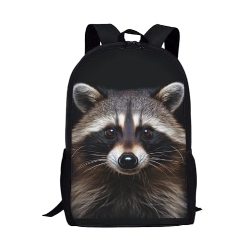 Showudesigns sött tryck djur barn skola ryggsäck med flaskficka, Tvättbjörn tryck, En storlek, Bagageset