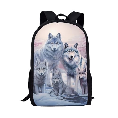Skolryggsäck för tonåringar, vardagsresor skolväskor djur vargar ryggsäck för tonårsflickor lätt ryggsäck vattentålig bokväska högskola män arbete dagväska, Stil-6, en storlek