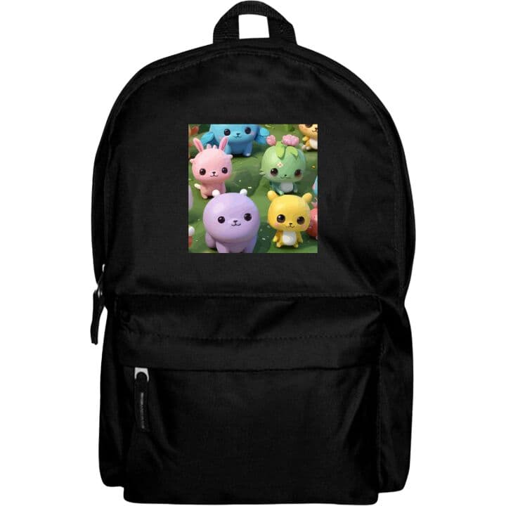 Vuxen-Ryggsäck | Bekväm och Stilren Kawaii djur i pastelliga färgglada figurer på grön bakgrund, lekfullt motiv för barn och unga vuxna