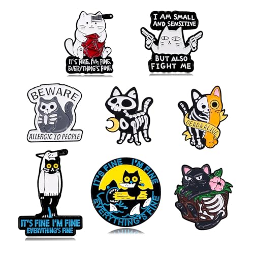 8 stycken fina emalj nål set, katt emaljstift, djur emaljbrosch, män kvinnor barn broscher, humoristisk katt, för pullover halsdukar bandanas ryggsäck gör-det-själv hantverk dekoration, Metall