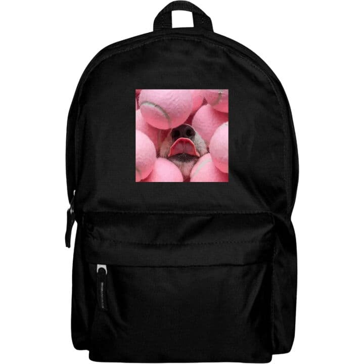 Barn-Ryggsäck | Bekväm och Färgglad Rosa tennisbollar med lekfull design som visar en hunds nos, kombinerar djur och sport på ett roligt sätt. Svart B