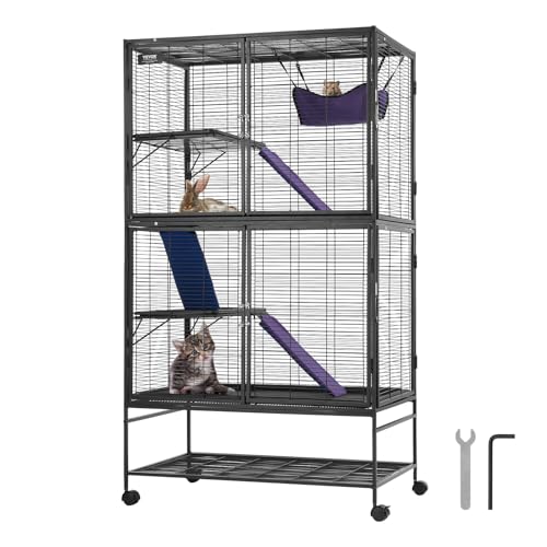 VEVOR 164 cm (64 tum) rullande metall illerbur, stor 4-nivåers Critter Nation bur, liten djurbur med ramper och bricka, lätt att installera för husdjursmöss, hamster, marsvin, chinchilla, ekorre,