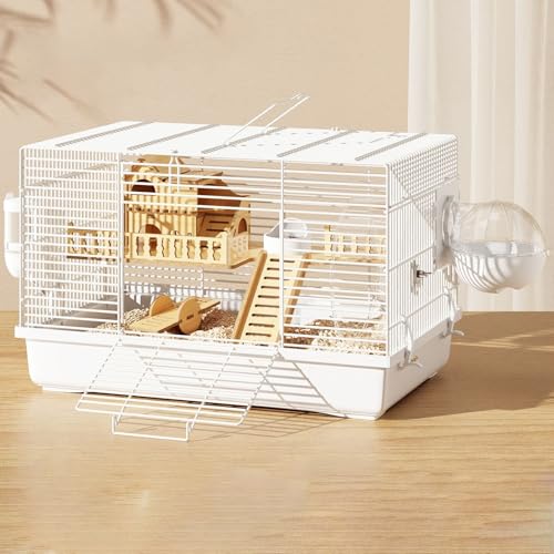 Hamsterbur i Tråd, Stor med Bärbart Handtag, Liten Djurbur med Vattenflaska, Matskål, Träningshjul, Gerbils Fristad med Externt Badrum, Lätt Att Städa(White)