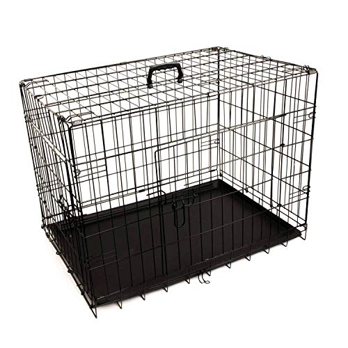 FEANDREA Hundbur Heavy Duty, nätlåda, djurbur, 107 x 70 x 74,9 cm, för stora och medelstora hundar, säker, 2 avtagbara dörrar, enkel rengöring, valpkåta, XL, svart