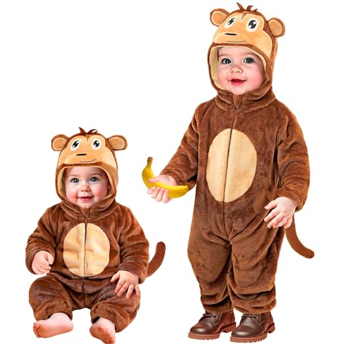 Smiffys Apdräkt för barn, djur, overall med huva, barn unisex maskeraddräkt, apa djurdräkt för Halloween, utklädningsfester, World Book Day, roliga evenemang, mjuk cosplay outfit