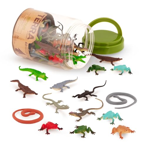 Terra 60-delar djurfigurer samling reptiler och amfibier leksaksset – orm, groda, krokodiler, ödla och mer – leksaker från 3 år