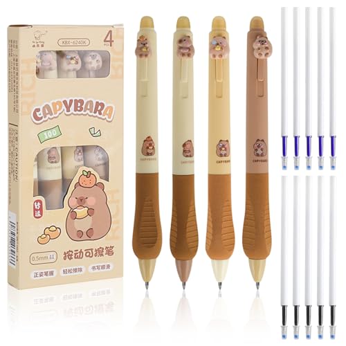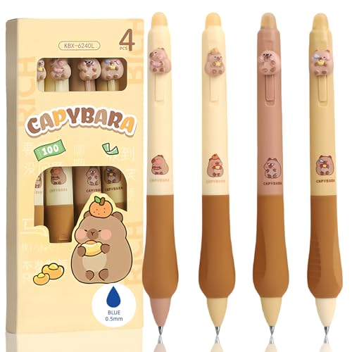 Raderbar kulspetspenna, set med 4 djurpennor, pennor med djurhuvud, kula i änden för att ta bort bläckkulspetspenna – diameter på 0,5 – kulspetspenna raderbar (A-Q Capybara Bläck Färg: Blå)