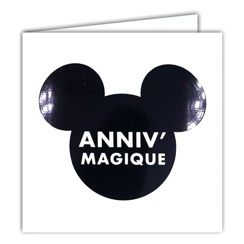 22224 Magiskt fyrkantigt födelsedagskort svart djurhuvud glänsande panda mus - med vitt kuvert 15 x 15 cm - fransk tryckt utgåva skapelse - dröm ordkollektion