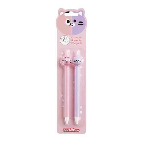 Back2Fun 2-pack raderbara pennor, värmekänsligt blått bläck, djurhuvud med suddgummi, roliga kulor, kreativa skrivmaterial för barn, tänkt för att skriva, rita eller ge bort