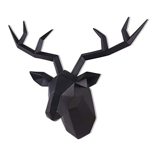 Keygift hjorthuvud väggdekor geometrisk svart hjorthorn väggskulptur falsk taxidermy harts vägg djurhuvud 35 x 13 cm