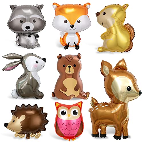 8 stycken folieballong, skogsdjur, XXL, tvättbjörn, hjort, uggla, ekorrballong, djurhuvud, jätteballong, heliumballongdjur, skogsdjur, ballong för barn, födelsedag, fest, dekoration, present