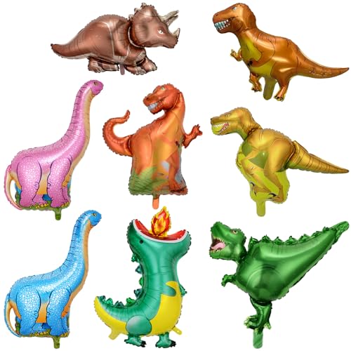 OSDUE Folieballong Dino, 8 stycken ballonger dino, djurhuvud jätteballong, barnfödelsedagsfestdekoration Tyrannosaurus Rex, velociraptor, Triceratops, Ceratosaurus, gul tyrannosaurus, Glurak