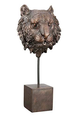 Casablanca Dekorativ figur skulptur tiger huvud på sockel XL – 3D djurhuvud staty av syntetisk harts – färg: bronshöjd 47,5 cm