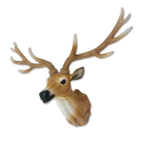 Keygift hjorthuvud väggdekor 50 cm realistisk brun hjort horn vägg skulptur falsk taxidermi harts djurhuvud väggmontering