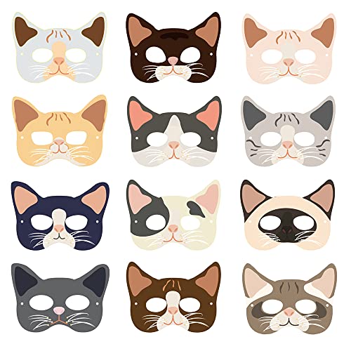 JAHEMU Djurmasker papper masker barnmasker katt djur party masker halloween mask jul födelsedag gåvor för barn 12 stycken