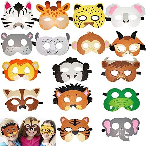 Sunshine smile 16 stycken djurmasker för barn, barnmasker djur, djurmasker för målning, masker födelsedagsdekoration, masker barn födelsedag, mask djur, djungelfestdekoration, mask filt djur (djurpark