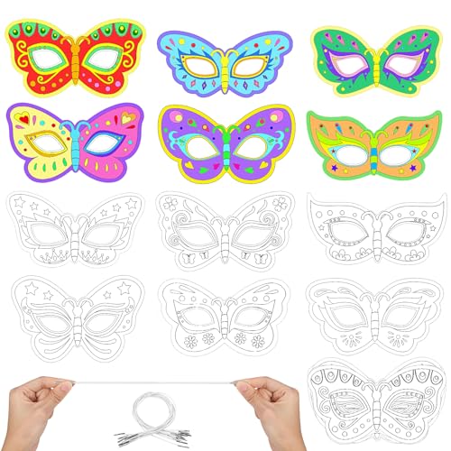 Hifot Djurmasker för barn fjäril mask tom målning barn masker för målning djurmasker för målning insekt för barnfest spel pysselset barns födelsedag pyssel (12 stycken)