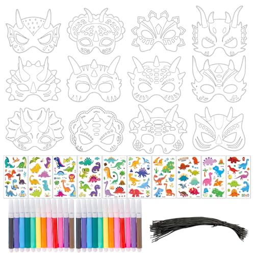W Rxkiocs Masker att måla barn dinosauriemask djurmasker för målning masker pyssel barn dinosauriemask djurmasker set med dinosaurie tatuering klistermärken för djungelfest alla masker fest