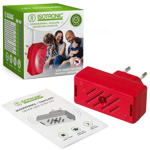 ISOTRONIC Musdistributör/gnagare med ultraljud | försvar mot möss och råttor | elektronisk, djurskrämma utan musfälla och råttgift
