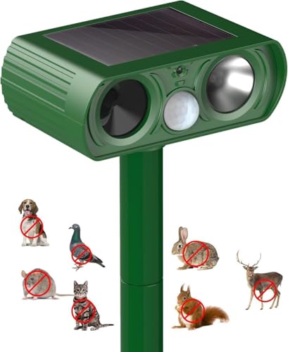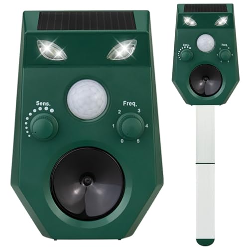 Solcellsskräckande, ultraljud djurskrämma kattskrämma, vattentät mårdskrämma med rörelsesensor, fågelskrämma, skrämma för mullvad, hundar, fåglar, kattskrämma för trädgård, gräsmatta gård