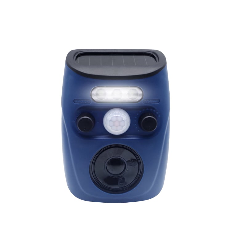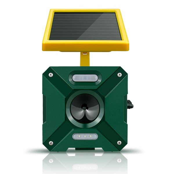 Genieforce® Ultraljuds-djurskrämma Combat+ Smart 360° mot katter, hundar, mård, räv, fågel, gnagare, vattentät, solladdning, 2 200 mAh, smarta PIR-sensorer – GF-EM-75