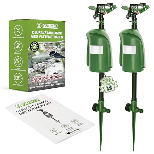 ISOTRONIC Vattenstråle djurskrämma I rörelsedetektor I Räckvidd 10 m I Herivarskrämma, vilda djur, kattskrämma 2 stycken