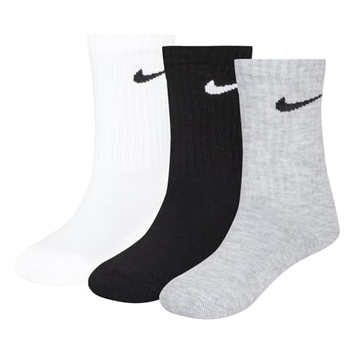 Nike Basic Pack Crew 3Pk Strumpor för barn, White/Dk Grey Heather, 4/5 År