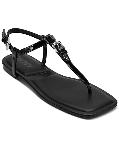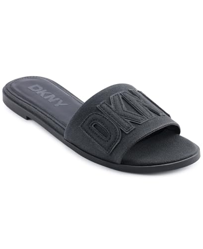 DKNY Dam Willow – platt rutschkana vardaglig vadderad innersula skor platt sandal, Svart, 7.5