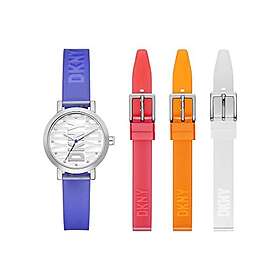 DKNY Soho Damklocka, Kvartsverk med armband i legering, rostfritt stål, läder eller silikonLila och vit uppsättning28MM