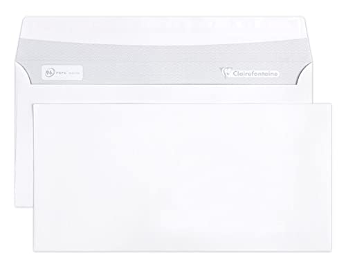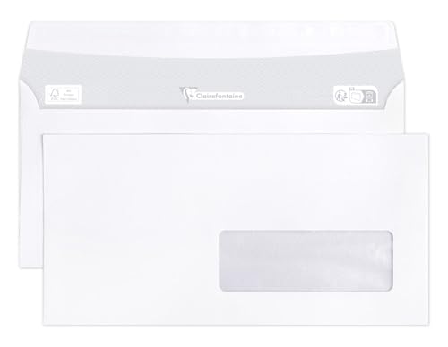 Clairefontaine PEFC 500 kuvert, DL, 110 x 220 mm med fönster, papp/35 x 100 mm, vit, 80 g, pergamentpapper, självhäftande