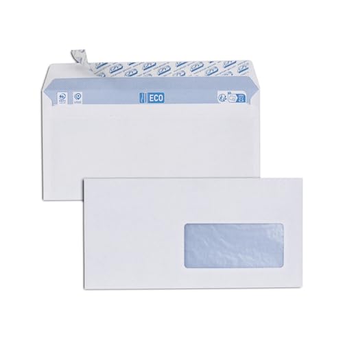 ELCO Proclima FSC CO2 DL Neutral återvinningsplånbok kuvert skal och försegla 100 gsm med 90 x 45 mm vänster fönster (låda med 500) – vit