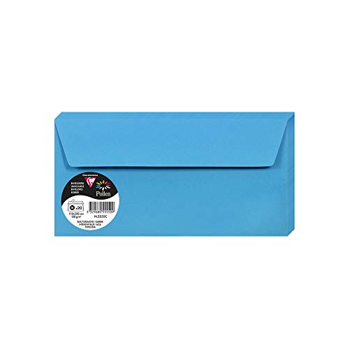 Clairefontaine – Ref 555C – Pollen, självhäftande kuvert (paket med 20) – DL-storlek, 120 gsm papper, skrivarkompatibel, syrafri, självhäftande remsa för enkel tätning – intensivt blått