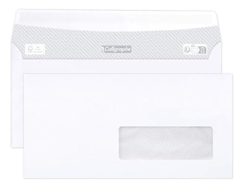 Kalligraf (Clairefontaines korrespondensintervall 693C - låda med 500 vita kuvert DL-110 x 220 mm - självhäftande - 80 g/m² - kristallpapper fönster 35 x 100 (position 20/20)