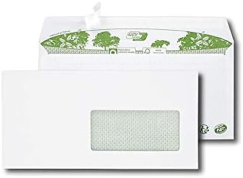 GPV Erapure kuvert DL-format 110 x 220 mm med 45 x 100 mm fönster 80 g återvunnen låda med 500 extra vit