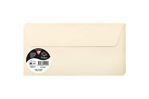 Clairefontaine – Ref 5445C – Pollen, självhäftande kuvert (paket med 20) – DL-storlek, 120 gsm papper, skrivarkompatibel, syrafri, självhäftande remsa för enkel tätning – kräm-förpackning med 20